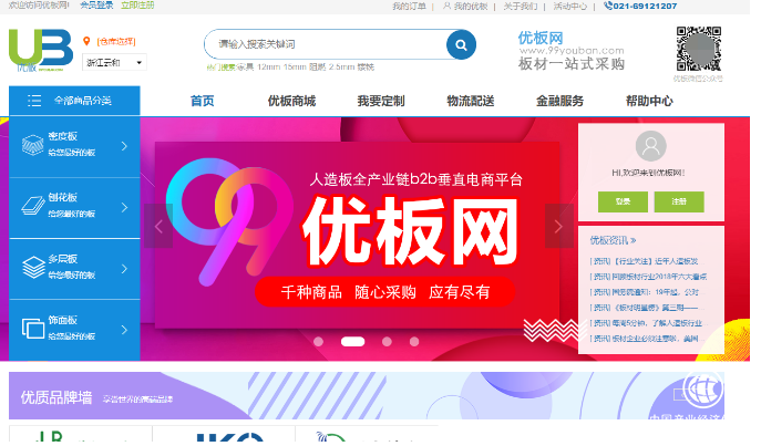 优板网搭建人造板B2B垂直电商平台,通过自营切入行业,同时将产业链不断延伸到板材仓储、物流及金融等业务。截止2018年12月,优板网成功与超过40家人造板品牌建立长期合作关系,其中包括丰林、中福、高林等知名品牌。