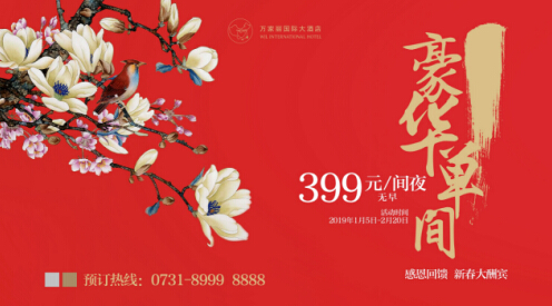 感恩回馈 新春大酬宾:万家丽国际大酒店豪华单间399元/间夜。