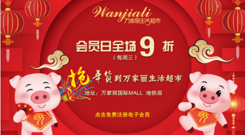 万家丽生活超市拉开了囤年货过新年的大幕。每周三会员专享全场9折,如果您想采购一些上档次的礼品送亲戚朋友,为他们添一份福气,您可以来此,万家丽生活超市的年货不仅够档次,够面子,还够优惠!为您满满添福气!