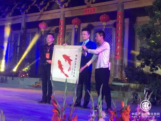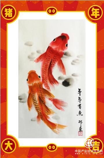 国际艺术大师、著名画家邢东登台现场绘画了作品《锦鲤好运,年年有余》,用时4分多钟,两条惟妙惟肖的红色锦鲤就跃然纸上,邢东创作的灵感来源于敦煌壁画的榆林窟作品,画中的鱼表示无量的珍宝,锦鲤素有“水中活宝石”、“会游泳的艺术品”的美称,象征着好运连连,年年有余的吉祥寓意。