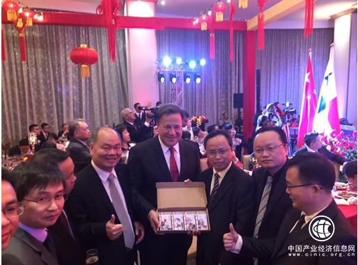 北京时间2月2日,巴拿马中国大使馆新春招待会,巴拿马巴雷拉总统应邀参加并致辞,并观看了来自清远连州壮族的舞蹈表演。招待会上,雷玉春副市长向巴雷拉总统介绍清远,雷副市长将飞霞液赠送给巴雷拉,巴雷拉对飞霞液的包装颇感兴趣,他说他也有一间酒厂,并表示今年有可能到访中国。雷玉春说,如果到访中国,我们热烈欢迎总统来清远做客。