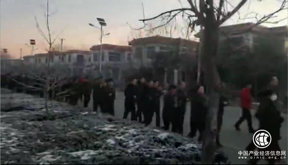 ▲春寒料峭,参加第三届全国碳氢核肥技术培训班的学员在济南的晨曦中跑早操