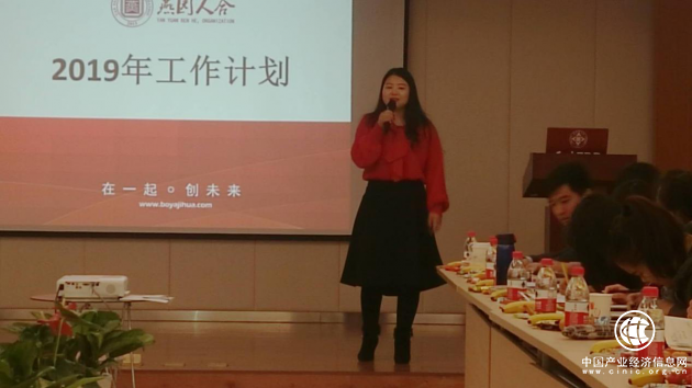 合作部主管马小巧首先进行发言,她深情地说:“2019年是北大博雅·燕园人合腾飞的关键年,主要的工作思路是稳定已有培训项目,进一步深化合作,拓展新的业务生长点。全年工作主要围绕‘一个建设,一个服务’展开。‘一个建设’即标杆建设,建设成为外设机构合理、制度健全、教学相长、业绩持续增长的核心部门;‘一个服务’主要围绕服务目标展开,形成“目标—执行—评估—改进”的闭环生态。”