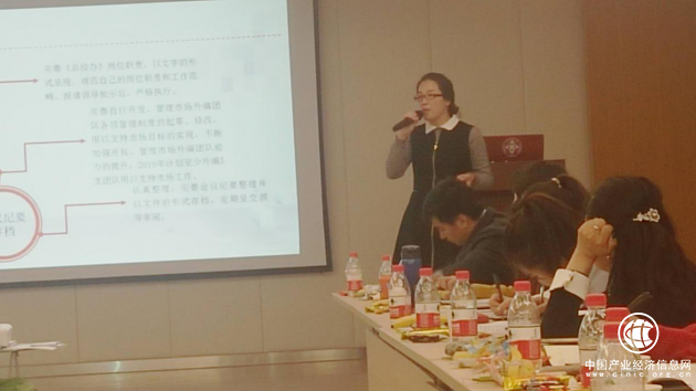 培训部副主管张园回顾了2018年的工作,在取得成绩的同时,她也总结了工作中的不足和问题,“客户沟通及成交落地跟踪还有待进一步探索,尤其是智库建立,今年是我的着重点项目,我将继续努力,力争把智库项目及各项工作更上一个新台阶。方法是分解成总任务目标、月度任务目标和项目任务目标,做到心中有数,向着目标往前冲。”