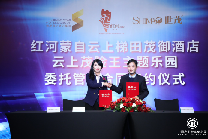 上海世茂旅游发展有限公司副总裁彭钺淇女士和红河州旅游投资有限责任公司总经理余杰先生签署委托管理合同