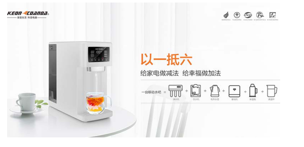 全品类厨电制造企业科恩电器技术堪称行业领先,进一步奠定了一名健康饮水专家标杆引领地位。中国厨电十大品牌,健康饮水倡导者科恩高端智能净饮一体——移动水吧凭借三芯七级精滤系统和纳米后膜加热设备,创新实现净化与加热一体,其化繁为简,让消费者能即滤即热即饮,无需接水后烧开再存储,也无需勾兑冷热水,轻按一个童锁键和四个相对应水温键即可提供4种不同水温的新鲜纯净水。