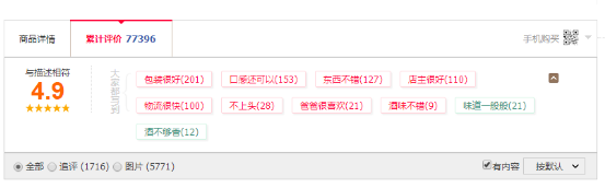 在江小白的所有产品中,100ml的表达瓶是其爆款单品。我们可以用该产品在电商平台的消费者评价为切入口,来分析品牌和产品特点。记者登录京东、天猫等电商平台,查阅了江小白的用户评价标签,分别呈现出以下几个关键词:纯正爽口、醇厚甘甜、口感还可以、不上头、好喝不腻。可以看出,口感舒适、味道爽口已经是成为江小白产品最主要的特点。通过消费者的评价标签与数据分析,不难发现,江小白真正的成功要素是来自于产品口感,凭借这样的特点,江小白已经成为了年轻群体中最受欢迎的品牌。