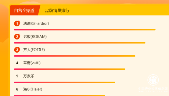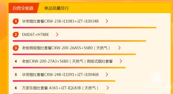 单品销售的排行,華帝、方太、老板、万家乐都榜上有名。