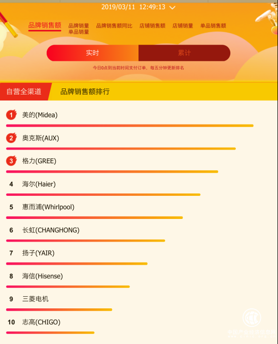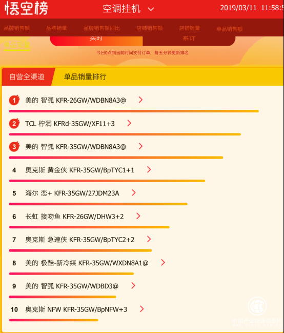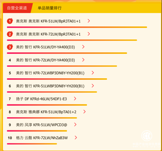 在今天的排行榜中。美的、奥克斯、海尔传统空调厂商占据销售额前三的位置,但是格力空调没能冲上前三名,不知道董小姐会不会失望。另外销售额前十名没有看到互联网品牌的影子。这也说明消费者还是比较看好传统家电品牌的产品。像TCL、长虹、海信这样做电视起家的品牌在榜单中拥有不错的排名,而当下哪些产品卖的最好呢,我们可以从单品销量排行榜上一探究竟!
