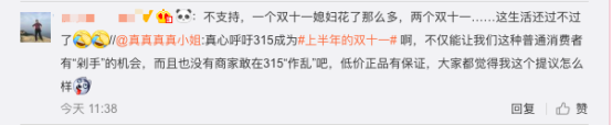 对于“将315打造成上半年的双十一”这一问题,不少网友也纷纷表达了自己的看法。