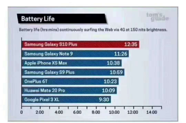除了拥有创新的科技,三星GalaxyS10系列在用户最关心的续航问题上也寻求突破。三款产品为消费者提供了不同的电池容量,其中三星GalaxyS10+为4100mAh大容量电池。近日,外媒Tom’sGuide也公布了他们对旗舰机型续航能力的测试结果,并表示三星GalaxyS10+是“有史以来续航力最佳的旗舰手机”。