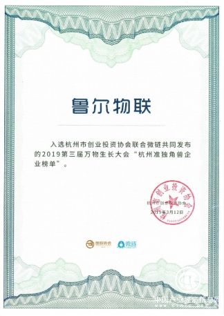 鲁尔物联入选“杭州准独角兽企业榜单”