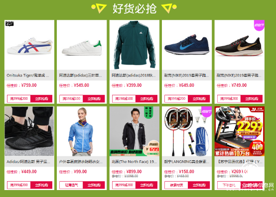活动期间,买运动品牌时尚爆款就享超级便宜。阿迪达斯superstar透气休闲板鞋低至199元;Skechers斯凯奇D'lites女款复古拼接熊猫鞋休闲鞋直降200元,到手价399元;原价239元的李宁潮流休闲板鞋易购价119元起。