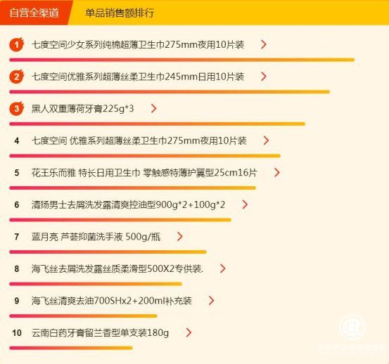 个人护理类:七度空间霸榜牙膏洗手液洗发露热销