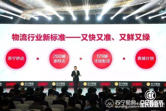 同时,在消费者普遍关心的物流方面,苏宁还建立了“又快又准、又鲜又绿”的物流行业新标准,目前,苏宁末端配送已实现90%以上地区当日达或次日达;准时达覆盖200个城市;苏宁冷链也已覆盖大约179座城市。
