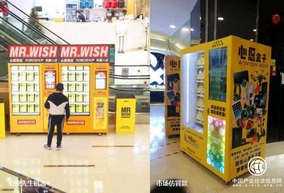 于是,小编就在网上和一些商场实地走访了解了一下,发现一些重要的商业中心里面都有“幸运测试机”的展示,很多商业中心中的“幸运测试机”中的“幸运盒子”都已经被消费者们兑换完了。从用户反馈来看,半年时间就突然“冒出来”这些机器了。从“心愿先生”在网上被报道,以及线下商业中心展示的“幸运测试机”比例来看,这个自动贩卖机或许在线下布局已经达到了数千台。