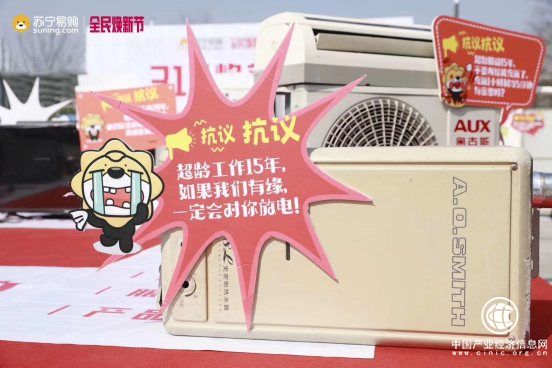 活动同时在全国多个城市登场。每个城市又配合有不同的新玩法。南京苏宁在徐庄苏宁易购生活广场上,进行了一场别开生面的老旧家电“吐槽大会”,每一件旧家电一个标志牌,吐槽家电超期服役的危害。活泼的宣传语和海报一经亮相,就吸引不少路人前来观看。