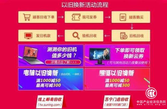 本次的以旧换新也是线上线下全渠道的。线下的话可以到苏宁直营店、苏宁小店、零售云门店、苏宁大润发店、苏宁红孩子店、苏宁极物、苏宁影城等多家门店参与,大件家电还有免费拆除的服务。线上换新则只需登录苏宁易购APP,输入“以旧换新”即可进入到以旧换新专题页面,选择家电回收类型后,根据自己的产品型号,详细填写旧产品信息。订单提交后领取购买新机的优惠券。