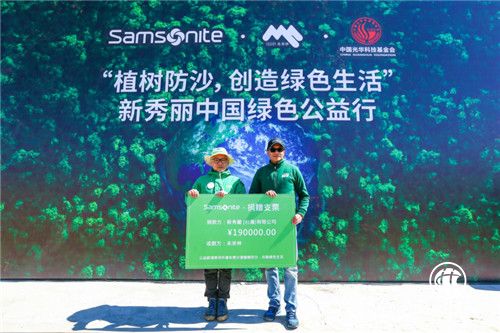 此外,今年美商新秀麗太平洋有限公司台北分公司的加入也让这份公益力量更加强大。在捐赠仪式上,新秀丽(中国)有限公司向未来林捐赠了七十万元人民币,美商新秀麗太平洋有限公司台北分公司赠了十九万元人民币,用于2019年度植树防沙工作。