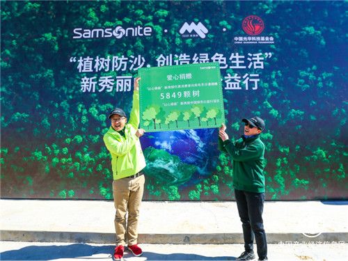 新秀丽大中华区马瑞国总裁曾经说过“我们的捐助行动只是点亮一盏小航标灯。我们不仅仅希望通过自身企业的力量,切实的帮助到中国土地荒芜化的治理,我们更希望通过这样的慈善公益项目,从我们企业内部员工开始,增加他们的公益活动参与度,来激励社会更多人关注中国的土地荒芜化问题,关注慈善,并投身公益之中。”2018年,新秀丽发起“以心换新?行无止境”的公益换购活动,呼吁更多消费者和新秀丽员工一同参与其中,共计4,985名顾客朋友参与到本次公益行为当中。2019年,新秀丽“以心换新”活动再次出发,”以心换新?减价更减碳”,联动线上线下,共筹集了5,849棵树苗,带着这些爱心,公益行团队前往内蒙古库布齐沙漠,实现筑梦绿洲的心愿。将实践行动与公益捐助相结合,给这个温暖的初春增添一抹绿意,为重建绿洲生态系统献上一份力量。