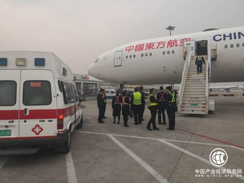 北京时间17:15分,航班安全降落,东航工作人员陪同突发病状的旅客前往医院接受治疗,旅客现已转危为安。