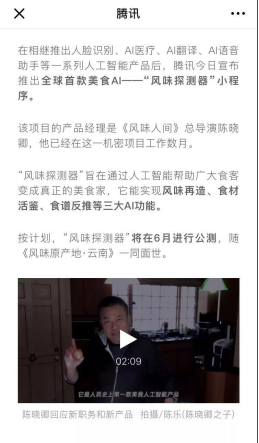 腾讯也不甘示弱,开始研究美食AI功能——“风味探测器”,还请来了《风味人间》导演陈晓卿当产品经理!这种一本正经说瞎话的本事,差点就信了。
