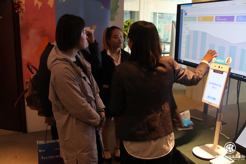 (图为九啸科技3.29刷脸支付产业峰会现场参会者体验刷脸支付)