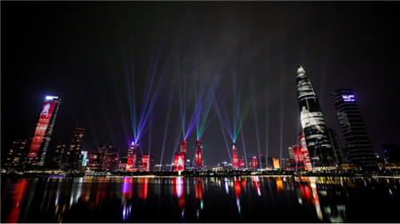 (图注:深圳上演2019篮球世界杯灯光秀)