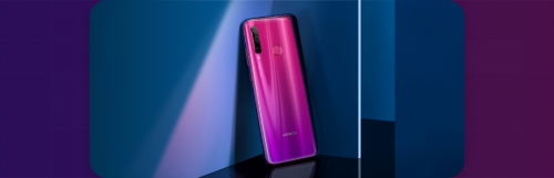 在配色方面,荣耀20i拥有蓝紫渐变、红紫渐变、黑色三款。从高清图片中,可以看出荣耀20i的外观颜值非常高。荣耀20i正面采用了“珍珠屏”设计,屏幕占比极高,极具视觉冲击力。荣耀20i的背壳不仅有渐变效果,还拥有光影流动的折射效果,而且左半边和右半边的炫光呈现不同的形式,极为夺目。