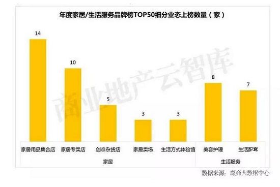 对于家居行业而言,新品牌、新玩法更是不断涌现,且在购物中心的占比不断上升,从小众开始走向主流。由赢商网大数据中心发布的《年度购物中心关注家居/生活服务品牌TOP50》显示,家居类品牌上榜35家,其中,家居用品集合店品牌上榜共14家,新兴品牌占了10家。