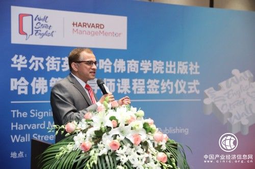 本次华尔街英语与哈佛商学院出版达成合作,依据中国英语学习者的特性升级课程,帮助中国成人英语学习者提升英语语言能力的同时,增强中国职业人在激烈的竞争中培养全面的思维与技巧,灵活应对更多更复杂的难题与挑战。哈佛商学院出版全球事务高级副总裁VinayHebbar在签约仪式上表示,十年前,华尔街英语因其特色的教学理念和方法、业内的美誉度,成为了哈佛商学院出版在英语作为第二语言领域的优先合作伙伴。本次“哈佛管理导师”中国升级版课程参考了合作伙伴华尔街英语的反馈,为中国学习者特别推出了中英双语版本以及课程手机APP,实现了随时随地、无语言障碍地学习该课程。