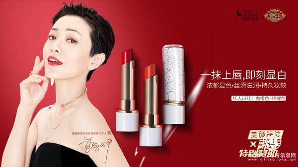 现场,美颜秘笈彩妆系列代言人-郭采洁与创始人胡静波先生共同公布揭晓2019春夏季新品——美颜秘笈红人口红新色号“锦鲤色”和“血橙色”;郭采洁还表示自己非常喜欢红人口红新色号-锦鲤色,并现场为胡静波董事长涂口红,引发全场欢笑不断!
