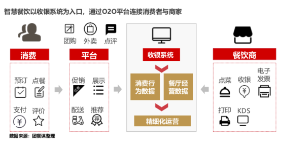 伴随着O2O模式的冲击,以及行业用工成本的攀升,餐饮行业竞争日益加剧。餐饮企业(尤其中小餐饮企业)对于提升管理效率、优化成本结构的需求快速增加;外卖、到店等新业务的爆发式增长强化了餐饮商家的线上精细化运营需求;此外,餐饮开放平台的上线使商户能在ERP后台高效完成团购验券、闪惠支付、外卖订单管理、门店管理、门店评价管理、排队点餐管理等一揽子运营活动,而SaaS云服务技术又使餐饮管理走向云端化。由此,以餐饮ERP及开放平台为基础的新技术推动着整个餐饮行业的数据化进程。