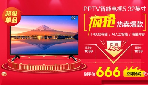 32英寸PPTV智能电视仅售666