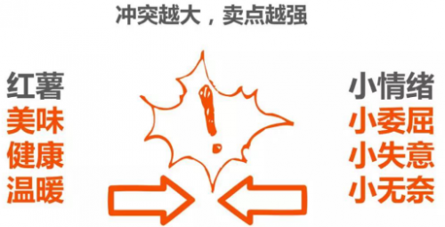 通过现阶段都市年轻人的精神状态的洞察调研了解到,现代年轻人生活压力大,常常会遇见一些“小委屈”“小失意”“小沮丧”“小无奈”,而红薯的“小甘甜”、“小美味”、 “小健康”是触手可得的安慰。