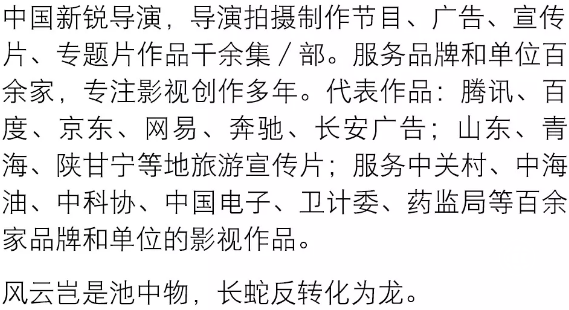 从最初的舞梦工作室到诗舞梦传媒,再到后来的国士无双影视工场,公司在成长中探索,迈上了一个又一个新台阶。机缘巧合下,国士无双CEO申鹤与首席摄制官吕文男的一次合作为后期的团队作战埋下了伏笔。从合作到相识再到后来两人在饭局上的一拍即合,国士无双摄制部人才专业化的空缺终于被弥补。