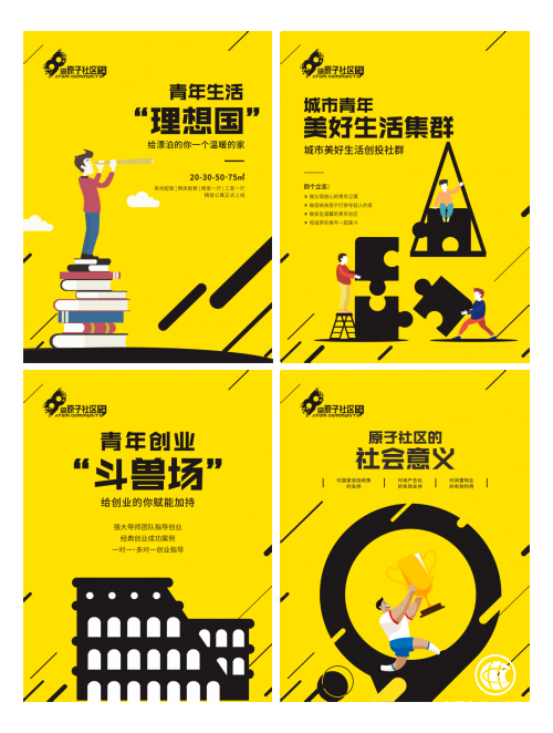 原子社区:为城市青年准备的大型生活社区,是为社会新鲜人构筑的生活集群和创投社群,是每一个对生活有理想,对创业有梦想的漂泊青年的一个理想归所。