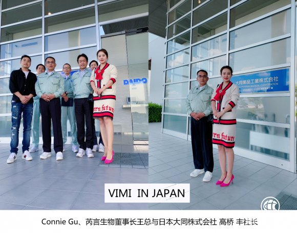 新品发布会召开前夕,Connie Gu带领核心经销商们参观大同株式会社生产工厂,得到厂长和总经理的亲自迎接,并共同参与新品生产剪彩仪式,宣告vimi水光素颜美白饮正式上线生产。