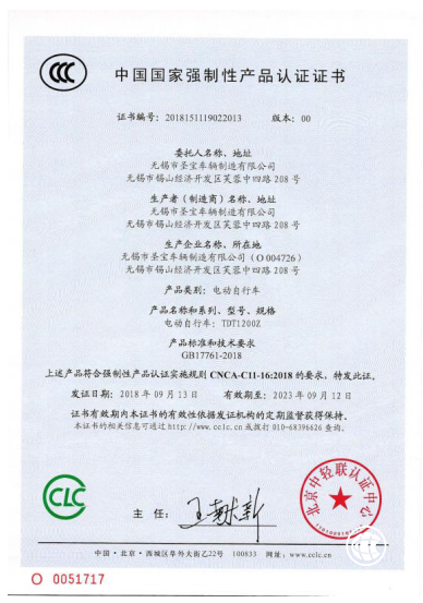 去年5月,《电动自行车安全技术规范》(即电动车新国标)正式颁布,电动自行车的新国标时代正式开启。自电动车新国标颁布之日起,欧派电动车便开始积极进行各项资质的申报工作,主动推进电动车新国标政策的落实,依靠过硬的产品质量和企业自身的不懈努力,欧派电动车先后获得了新国标电动自行车、电摩生产资质和CCC中国强制性产品认证证书。
