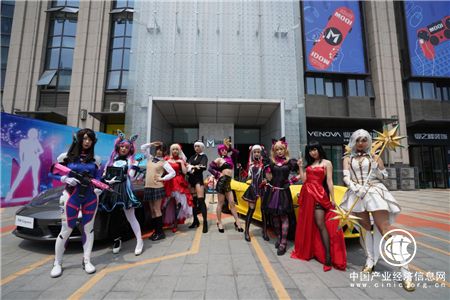 图为参加绿地魔奇如梦网红摄影会的动漫真人秀扮演者合影