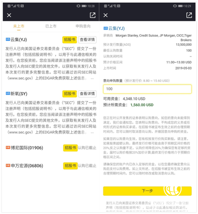 针对云集的打新,目前老虎证券提供的打新通道已正式开启。据老虎证券相关负责人介绍,投资者进入APPTigerTrade的“新股申购”页面即可点击查看云集的招股书并进行申购,最低申购数量为100股。按照预计发行价区间计算,打新最低门槛约为1560美元。目前,云集上市日期拟定于5月3日,按照惯例其申购通道将在美东时间5月2日的下午关闭。