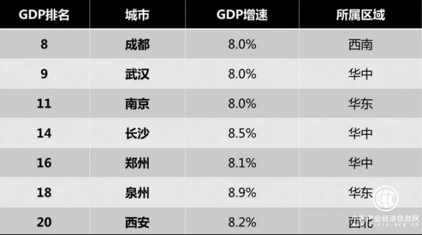 根据中国城市2018年的统计公报,在中国城市前20强中,有七座城市的2018经济增速超过了8.0%,两座东部城市,两座西部城市,以长沙为首的华中地区贡献了三座城市——中部崛起的大趋势不言自明。