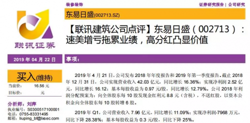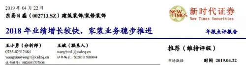 新时代证券:2018年业绩增长较快,家装业务稳步推进