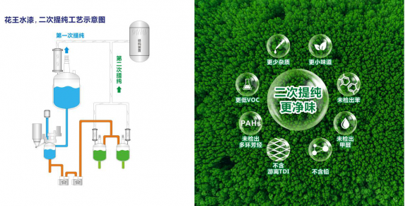纵观近年来涂料行业的变化,环保水漆涂料的比重直线上升。在竞争激烈的涂料市场内,花王水漆致力于绿色环保涂料的创新、研发及生产,利用二次提纯技术减少产品对环境的污染,用实际行动践行环保的企业责任。