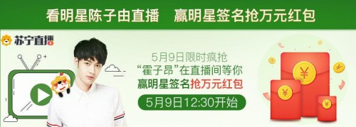 5月9日12点30分,新晋鲜肉陈子由将在苏宁直播平台送出万元红包,小柚子们还有机会赢取“霍经理”亲笔签名。实力宠粉!子由还用心挑选了数款产品,买指定商品满59元可享9.9元加价购;随身携带好物,更享“霍经理”宠你价。