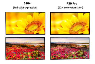 正因如此,三星得以将最好的屏幕体验留给了自家旗舰三星Galaxy S10系列——从过去的Super AMOLED 升级为 Dynamic AMOLED,将亮度、寿命、色彩显示全面提升。三星Galaxy S10+的屏幕PPI超过500,它能够显示1600万种色彩,而且色彩显示达到了100%。反观华为P30系列中顶配的P30 Pro 6.47英寸OLED屏幕的色彩显示只达到了92%,用户对两款机型的视觉体验差异可想而知。另据此前专业人士的评测显示结果,华为P30 Pro的显示屏是由京东方和LGD供货。
