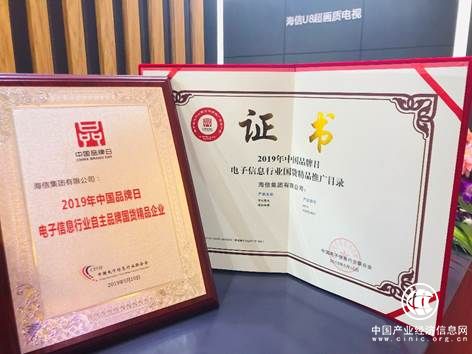 5月10日中国品牌日当天下午,中国电子信息行业联合会在上海发布了《2019年中国品牌日电子信息行业国货精品推广目录》,海信4K激光电视80L5、海信ULED超画质电视U8两款备受市场认可的产品双双入选。