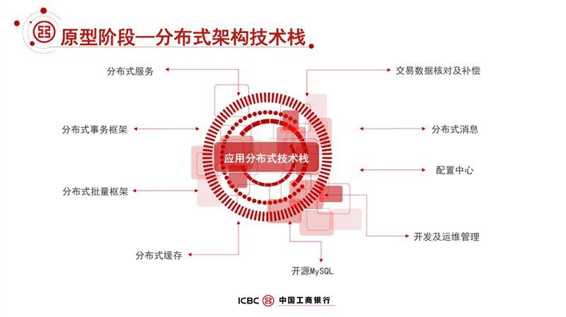 基于这样的一个原型探索,我们构建了一系列的分布式架构技术栈,包括分布式服务、分布式事务框架、分布式批量框架、分布式缓存、交易数据核对及补偿、分布式消息、配置中心、开发及运维管理。这里简单说一下: