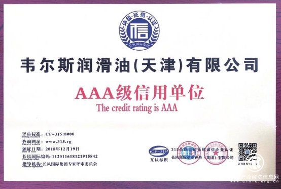 2018年对于韦尔斯来说,是不平凡的一年。这一年,韦尔斯润滑油4.0智慧工厂正式投产运营。这套系统以智能化为核心,将基础油储量信息、润滑油的调和、生产、灌装和封装工作集于一身,合理的调配并组织生产,从而实现了生产高度自动化、智能化。2018年年末,韦尔斯还被授予了“AAA级信用单位”,这也表明韦尔斯润滑油的品牌形象以及生产质量获得认可,具备了走出国门的基础,韦尔斯品牌的社会口碑、产品质量和公司经营的守信程度都严格符合相关标准。