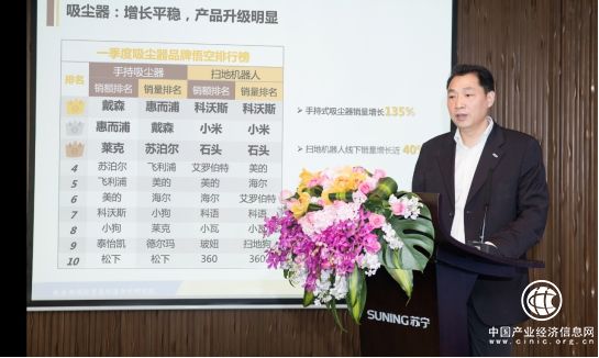 会上,商务部驻南京市特办特派员王选庆说到,2019年第一季度家电市场整体呈现智能、健康、高端趋势,智能化、健康化、高端化家电的占比在逐渐提高。这不仅在传统家电品类有所体现,在洗碗机、空气净化器、料理机、扫地机器人等新型品类上也可见一斑。智能空调、大屏彩电、健康冰箱、变频滚筒洗衣机、集成灶、扫地机器人等以提升性能和用户体验为主的高端、智能的家电产品日益受到消费者青睐。